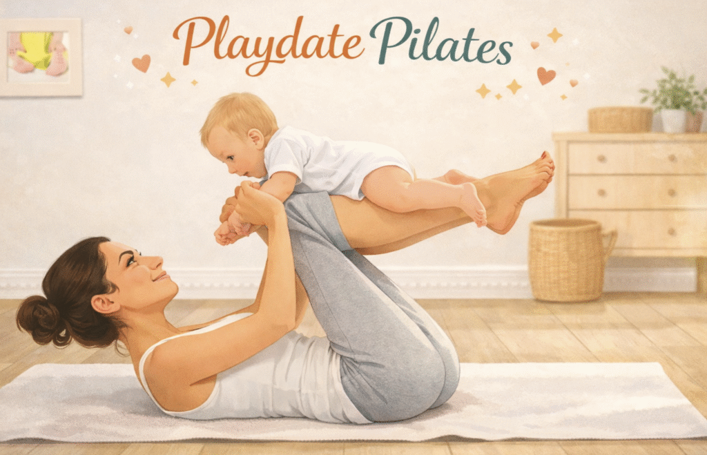 Join us for a fun and energizing 30-minute mat Pilates class designed for adults with your little one! After class, enjoy 1.5 hours of open play at Imagination Station Play Cafe.